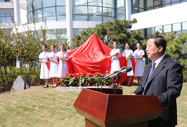 吴仪,山红红及学校老领导华泽澎、李秀生、郑其绪、仝兆岐等共同为杨光华塑像揭幕,家属代表、师生代表向杨光华塑像敬献花篮。