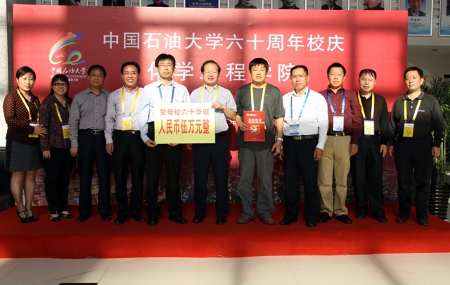 其中,化工92级校友张猛、化工88级校友肖爱东、中国石油大学沈抚校友会、炼制85级全体同学、化机89级全体同学等为学院进行了个人捐赠。淄博市质监局淄博特检分院、山东科创石油技术集团公司、山东垦利石化集团、山东利津石油化工厂有限公司、山东东明石化集团、山东德美石油设备有限公司、山东神驰化工集团有限公司、山东玉皇化工(集团)有限公司、山东金诚石化有限公司、山东京博控股股份有限公司、青岛惠城石化科技有限公司、贵州贵壹品酒业有限公司等单位为学院进行捐赠。