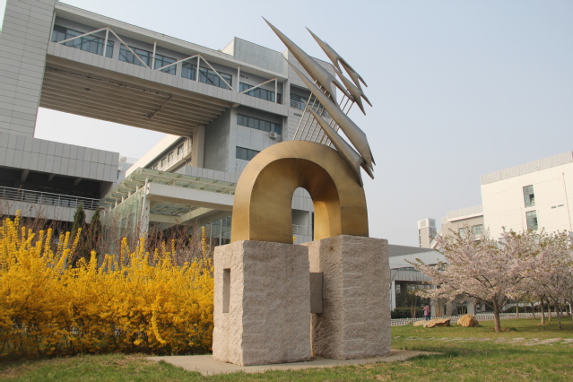 “化院之蕴” 艺术雕塑由华东石油学院炼制系78级谭峰创意,委托高级工艺师、雕塑家傅绍相先生设计,山东临朐华艺雕塑艺术有限公司制造,华东石油学院炼制系77、78级全体校友捐建。