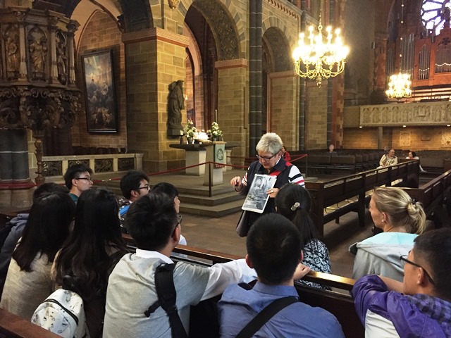 卡尔斯鲁厄是此次德国之行的第一站。我院过程装备与控制工程等专业先后有近十名学子在此攻读研究生,主攻机械方向。校友向师生们详细介绍了卡尔斯鲁厄工业大学的建校历史、办学情况、学科设置以及学校特色等,并带领师生对学校图书馆、实验楼等进行了实地参观。当晚在图书馆会议室进行了联谊座谈。座谈会上,校友与来访学生进行了深入沟通,就赴德留学的学分冲抵问题、语言学习问题、文化适应问题等进行深入的交流探讨。校友为来访学生提供了许多建议与意见,鼓励他们清晰确立学习目标并做好充足出国准备。