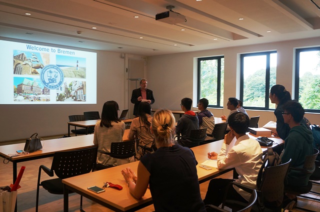 不莱梅雅各布大学Dr. Werner Nau在欢迎仪式上简要介绍该校情况