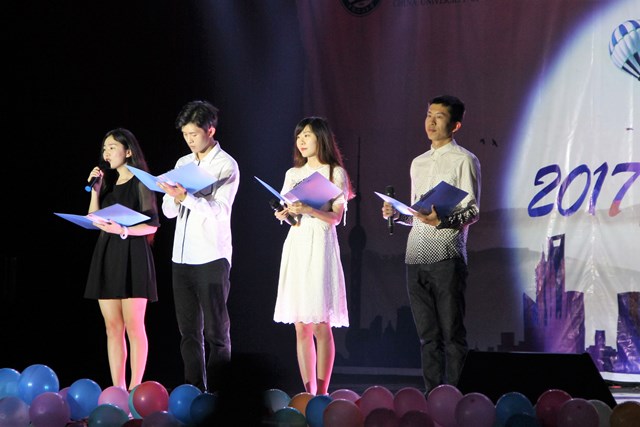 离歌是毕业的序曲,爱是石大四年的归宿,阿依波、王皓用一首《爱的代价》拉开了晚会的序幕;活泼俏皮的舞蹈《See you again》令现场渐入佳境;环设1302班的舞台剧《董小姐与董先生那四年》追忆如流水般四年,让人怀恋流泪;由刘宗宗、潘俊宇等演唱的《不说再见》回忆了大学的点点滴滴,勾起毕业生们离别不舍的思绪;动感活力的舞蹈《Love it》展现出了大学生青春活力;笑点十足小品《最可爱石大人》、相声《说学逗唱》让观众捧腹不禁;激情澎湃的朗诵《相信未来》让即将梦想启航的学子们信心满满;全体毕业班辅导员带来的《你曾是少年》,祝愿所有毕业生们“阅尽千帆,归来仍是少年”。