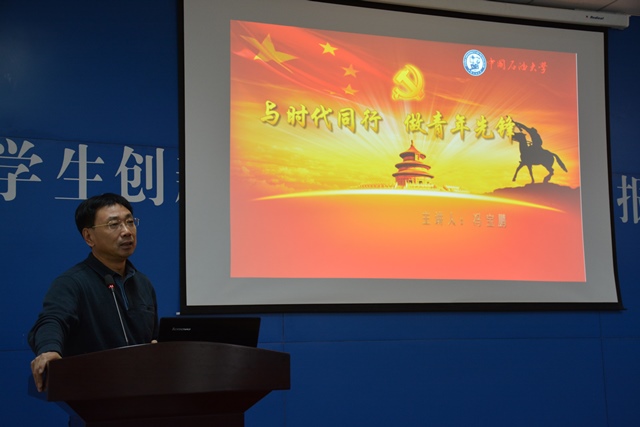 10月11日,化学工程学院在大学生创新实验中心报告厅举行“化蕴先锋跟党走,青春喜迎十九大”党员入学教育活动,学院党委书记冯宝鹏为新生党员讲授题为《与时代同行,做青年先锋》的党课。学院党委副书记王迅、全体辅导员、学生党支部书记以及2017级研究生党员参加了活动。
