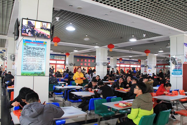 学生边吃饭边关注两会新闻