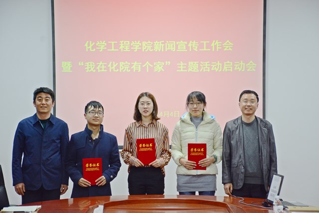 为进一步加强我院新闻宣传工作,4月4日,化学工程学院在工科楼A座学院报告厅召开新闻宣传工作会暨“我在化院有个家”主题活动启动会。学校党委宣传部副部长刘积舜,合作发展处副处长张炜,新闻中心王大勇、姜洪明,学院党委副书记王迅,教工党支部书记丁传芹、王丽飞,各系(室、中心)教师代表,全体辅导员和学生记者代表参加会议。