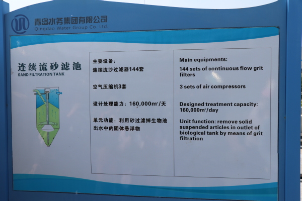 青岛海泊河污水处理厂是青岛市兴建的第一座二级污水处理厂,位于海泊河入海口南岸,主要汇集四方区南部、市北区昌乐河以北地区的城市居民用水。厂区采用膜序批反应器(MSBR)处理工艺,处理水量约16万m3/d,出水水质稳定达到《城镇污水处理厂污染物排放标准》(GB 18918-2002)的一级A排放标准。
