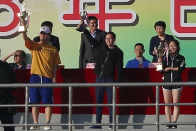 学院党委书记冯宝鹏代表学院领“院长杯”(左三)