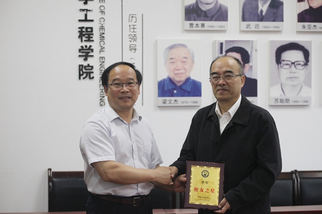 6月19日,岳阳兴长石化股份有限公司董事、我院石油炼制系78级校友李华等一行12人来校访问,化学工程学院在工科楼A座121召开会议,校企双方进行座谈交流。副校长姚军出席并为李华颁发“校友之星”奖牌,合作发展处处长王效美、化学工程学院院长杨朝合、党委书记冯宝鹏以及教授代表参加座谈。