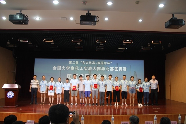 7月6日至7月8日,第二届“东方仿真-欧倍尔杯“全国大学生化工实验大赛华北赛区竞赛在我校举办。该赛事由教育部高等学校化工类专业教学指导委员会、中国化工教育协会主办,我校化学工程学院承办,来自48所高校的参赛队伍及指导教师200余人参与竞赛。化工教指委副主任委员、中国石油大学(北京)党委书记山红红教授,化工教指委委员、中国海洋大学胡仰栋教授和山东理工大学傅忠君教授,中国石油大学(北京)刘梦溪教授,我校副校长刘华东教授,化学工程学院院长杨朝合教授,教务处副处长刘臻,以及大赛评审组和东方仿真、欧倍尔、莱帕克等企业的相关人员出席竞赛。