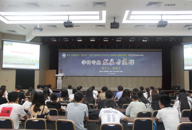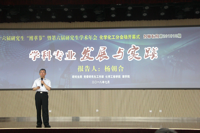7月6日,第十六届研究生“博萃节”暨第六届学术年会化工化学分会开幕式在留培楼报告厅举行,化学工程学院院长杨朝合教授应邀为大家作题为学科专业发展与实践的专题报告,化工学院、理学院等200余名研究生参加了报告会。