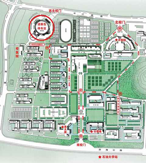 (3)青岛四方长途站:乘隧道8路公交车(无人售票,票价2元)由四方长途站至石油大学站下车,即到学校南门。