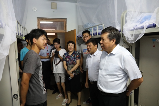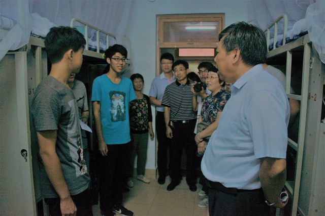 9月10日,校长郝芳、副校长刘华东和张玲玲一行人来到新生报到点,与报到新生热情交谈,学生代表为校长献花,送上节日的祝福。之后校长一行人来到10号公寓看望学院新生,与新生及家长亲切交谈,表达对新生的关怀,寄予美好的期望。