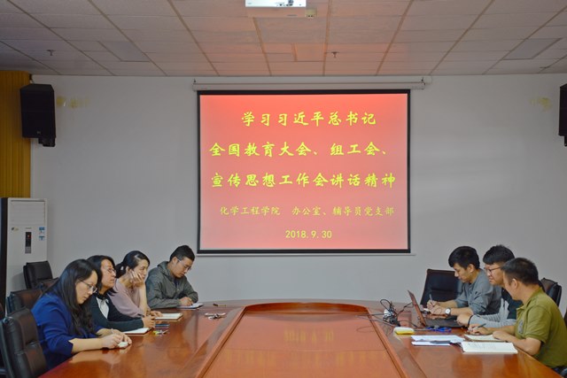 9月30日上午,化学工程学院办公室党支部与辅导员党支部召开会议,学习贯彻习近平总书记在全国教育大会上的讲话精神。会议由办公室党支部书记淡天俊主持。