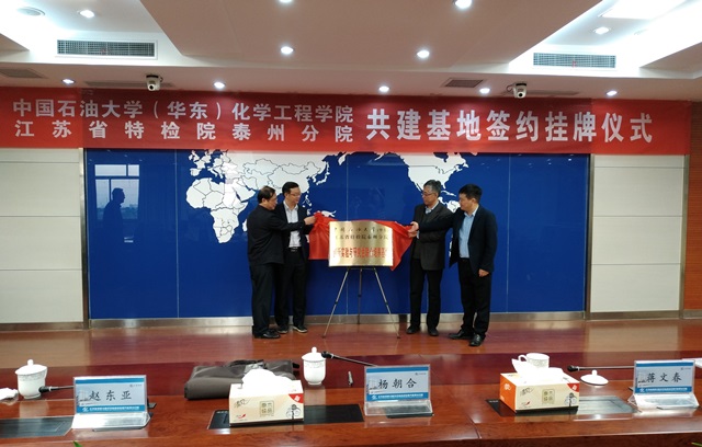院长杨朝合、副院长蒋文春、泰州市质监局副局长王建春江苏省特检院泰州分院院长王家文共同为创新联合培养基地揭牌 左海强摄影