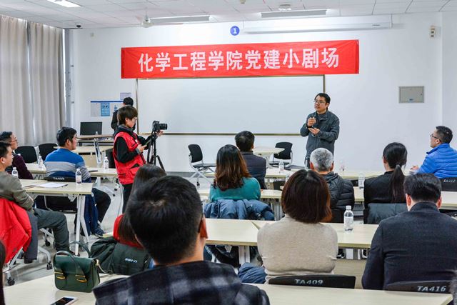 12月13日,化学工程学院党建小剧场在综合实验楼A409开演,来自化学工程系党支部的11名党员用话剧表演生动地表现出基层党建工作中发现的问题,引发现场学校党校专职副校长陈春生、党委组织部甘真玮、化学工程学院党委书记冯宝鹏等六十余名师生党员的思考和讨论。