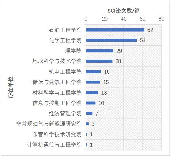 图中数字为论文篇数,占比。例如石油工程学院1区论文2篇,占比3%