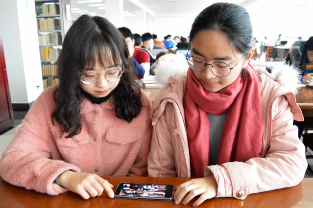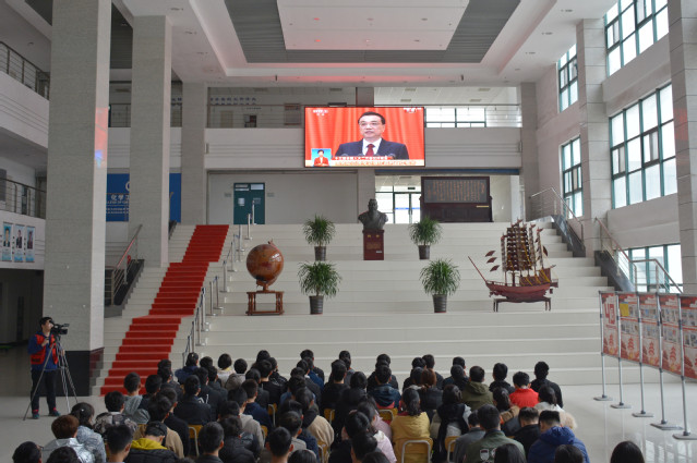学院组织学生观看十三届人大二次会议开幕会 魏孟吉摄影