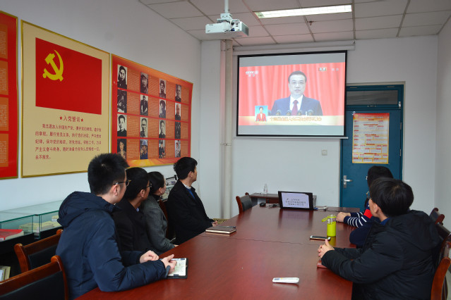学院于南教楼304组织学生党员观看两会直播 李国梁摄影