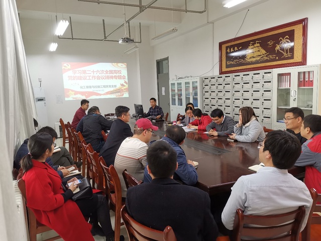 3月14日下午四点,化学工程学院装控系党支部在工科楼E411会议室组织学习第二十六次全国高校党建工作会议精神,会议由装控系党支部书记左海强主持,装控系全体党员教师参加了此次学习活动。