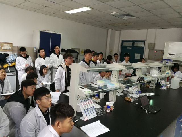 《生物化学实验》是增强学生理论知识认知、提高学生动手能力以及培养学生综合素质的重要环节。经过近一年的紧张筹备,由生物工程与技术中心负责的能源化学工程专业的专业实验3-2《生物化学实验》在3月29日正式拉开序幕。经过课前预习、有序分组、教师演示讲解等环节后,同学们开始井井有条地进行实验,并且基本达到了预期效果。在首次实验过程中,实验内容的设计、实验的演示及解说、实验流程的安排等获得了学生的广泛好评。