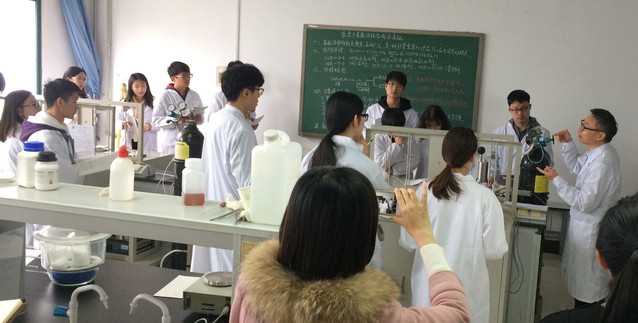 实验教学的每个实验项目各有教学特色,同时需要进一步规范各个环节,按照院系要求标准化实施。富有教学经验的沐宝泉老师讲授了精品实验课项目《非离子表面活性剂的合成》,依次讲解实验原理、试剂安全防护、仪器使用规则和实验操作步骤。实验过程中将实验固定参数及可变参数让学生进行选择确定实验方案,并将自行开发的定量定容管进行了对照应用。实验过程将反应工艺与反应操作通过讲解和实验进行了结合。教师强调预习重要性、操作的主观能动性,分析解决问题的灵活性以及确保实验安全的重要性。