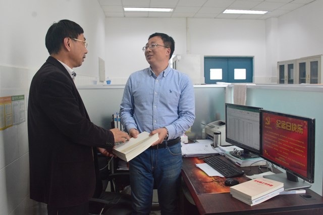 冯宝鹏在这个有纪念意义的日子里,为曲剑波送上了一套学院精心准备的党建读物作为礼物,图书包括《习近平用典(两辑)》、《党支部工作手册》、《新时代基层党组织工作怎么做》、《组织员工作手册》、《最新发展党员工作规程方法与案例启示》等。冯宝鹏鼓励曲剑波好好学习,努力工作,做好支部工作,更好服务师生。