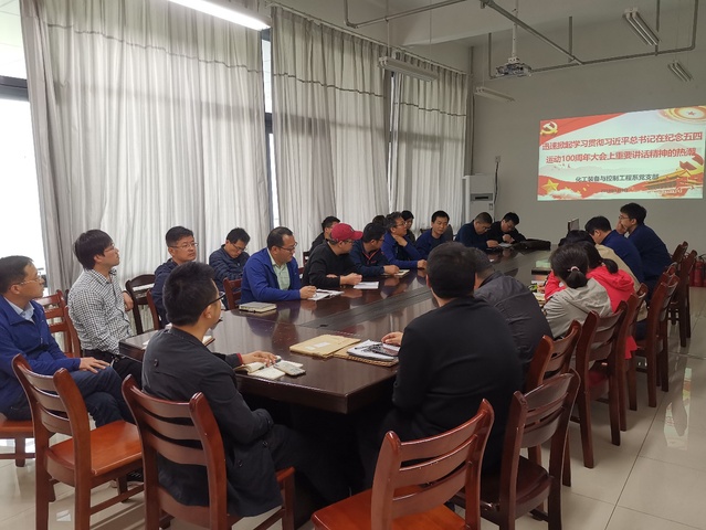 5月9日下午,装控系党支部在工科楼E411组织支部成员学习习近平总书记在纪念五四运动100周年大会上的重要讲话精神,会议由装控系值月党员孙治谦主持。