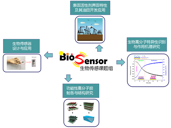 生物传感课题组以姜磊(英国牛津大学化学博士,牛津大学病理系博士后,新西兰恒天然集团公司研究科学家)为课题组长。课题组的研究瞄准生物医药、食品安全、油气开发等领域,主要研究方向包括: