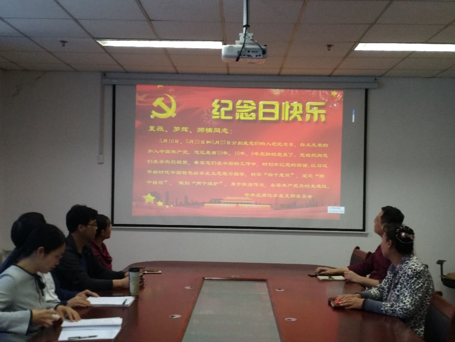 “我志愿加入中国共产党,拥护党的纲领,遵守党的章程,履行党员义务……”5月15日,应用化学系党支部开展了“入党纪念日”活动,为五月份入党的三位同志过“政治生日”。