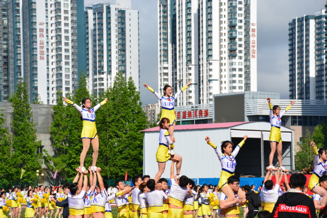 学院学生参与啦啦操表演被托举 魏孟吉摄影