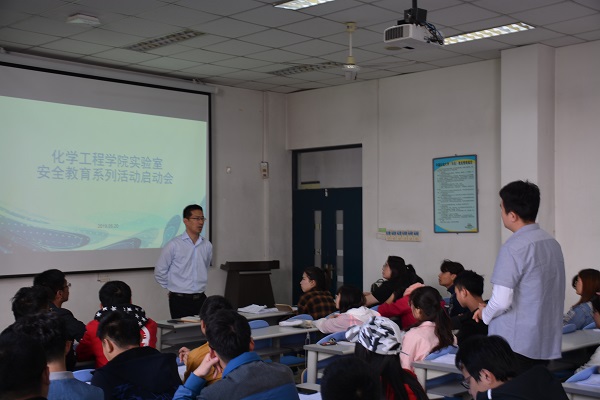 为加强实验室安全管理、提高学生实验安全意识,5月20日上午10时许,化学工程学院实验室安全系列活动启动会于南堂116召开,学院副院长刘义、团委书记郭孟出席会议,学院全体辅导员和研究生及本科生代表参加了会议。
