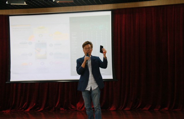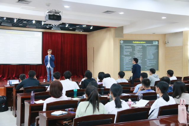 论坛伊始,Myung教授用手机—小型计算机与人体五大感觉做类比,引入论坛主题—传感器。他介绍传感器是一种能够使得分析物的一种或多种性质直接或间接地测量出来的装置。接着,他从传感器的分类讲到传感器的多样性,由于传感器的影响因素较多,如材料、模型、方法等,因此传感器是多种多样的。他又以化学阻抗传感器为例,从材料类型、形状、尺寸密度、结合方式四个方面对此类传感器进行说明和合理优化选择。接下来,他又介绍了E-Nose传感器,他指出这类传感器可以让更多没有嗅觉的人感受到世界的丰富多彩。论坛最后是问答环节,在场同学积极发言,与教授展开积极的讨论,学术氛围十分浓厚。