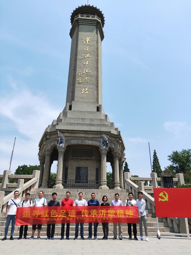 为增强党支部的凝聚力,发挥基层党支部的战斗堡垒作用,6月23日,值此建党98周年之际,化工学院生物中心教工党支部组织党员赴沂蒙革命纪念馆、华东革命烈士陵园和孟良崮战役纪念馆进行主题实践教育活动,缅怀革命先烈,学习革命英雄先进事迹,追寻红色足迹,传承沂蒙精神。