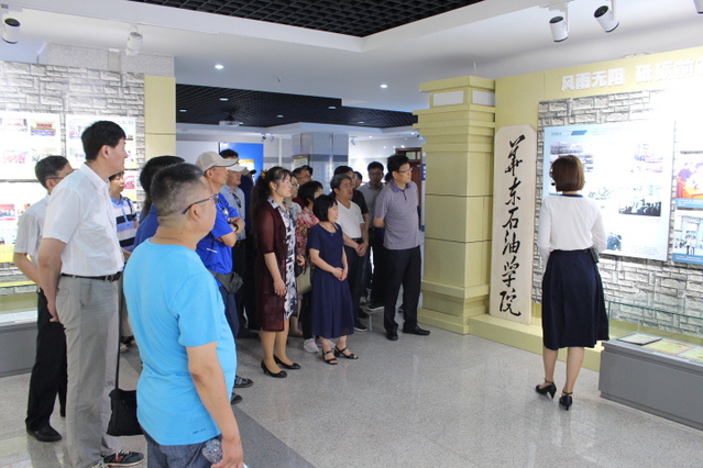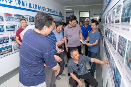 6月22日,在讲解员的带领下,校友们兴致勃勃地参观了校史展览馆,讲解员通过大量的文字、图片等资料向校友展现了我校几十年来的发展历史,生动再现了一代代石大人自强不息、奋发图强的奋斗历程、充分展示了学校改革发展的巨大成就。一幅幅图片,一个个故事深深的吸引了校友们的目光,校友们认真倾听讲解员的讲解,不时追忆起当年在学校读书期间的美好时光。之后,校友们来到工科楼E座四层,参观了化工装备与控制工程系,当在校友墙照片中找到自己时都非常兴奋。