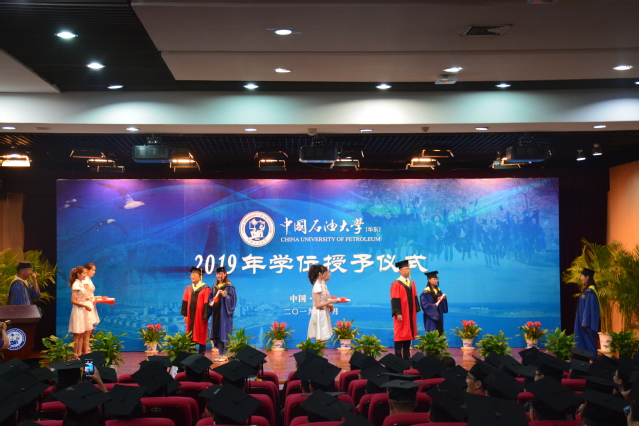 6月24日上午,化学工程学院2019届毕业生学位授予仪式在逸夫礼堂举行。仪式由学院副院长刘欣梅教授主持,学院院长杨朝合教授,学位评定分委员会主席刘晨光教授,副院长刘东教授、蒋文春教授以及环境系赵朝成教授为619名本科生、301名研究生授予学位。