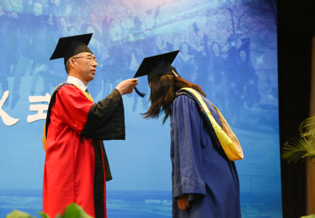 院长杨朝合教授为毕业研究生拨穗 焦国红摄影