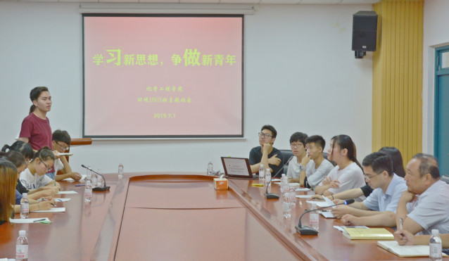 7月1日上午,化学工程学院环境1801班在工科楼A座院报告厅召开“学习新思想,争做新青年”主题班会,副校长李兆敏教授受邀出席并为学生讲党课。学院党委副书记王迅、班主任张云波、全体辅导员参与旁听、共同学习。