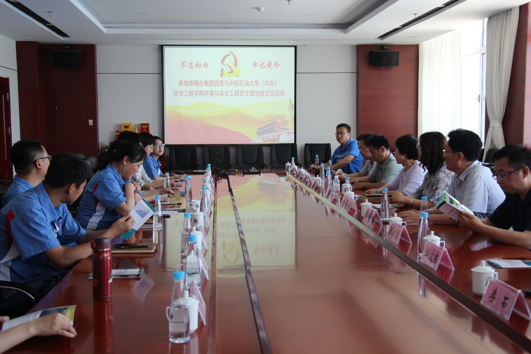 琅琊台集团党委委员、纪委书记、副总裁郝平认为,坚持党的领导、加强党的建设,是我国国有企业的光荣传统,是我国国有企业的独特优势。企业党建,做实了就是生产力、做强了就是竞争力、做细了就是凝聚力。随后介绍了琅琊台集团如何结合集团公司的产业结构,通过加大新产品的研发、不断提高产品质量来提高企业竞争力,从而为支持地方经济发展而贡献力量。环境与安全工程系党支部书记刘芳书记认为,作为高校教师“不忘初心”就是时刻记住作为一名教师要“传道、授业、解惑”,“牢记使命”就是在日常工作中不断提升业务水平,为培养现代化高等人才“鞠躬尽瘁”。通过此次党建交流活动,双方一致认为,以加强党建工作为根本出发点,把党建工作融入到双方“产学研”交流合作中,充分实现高校与企业的深度融合。