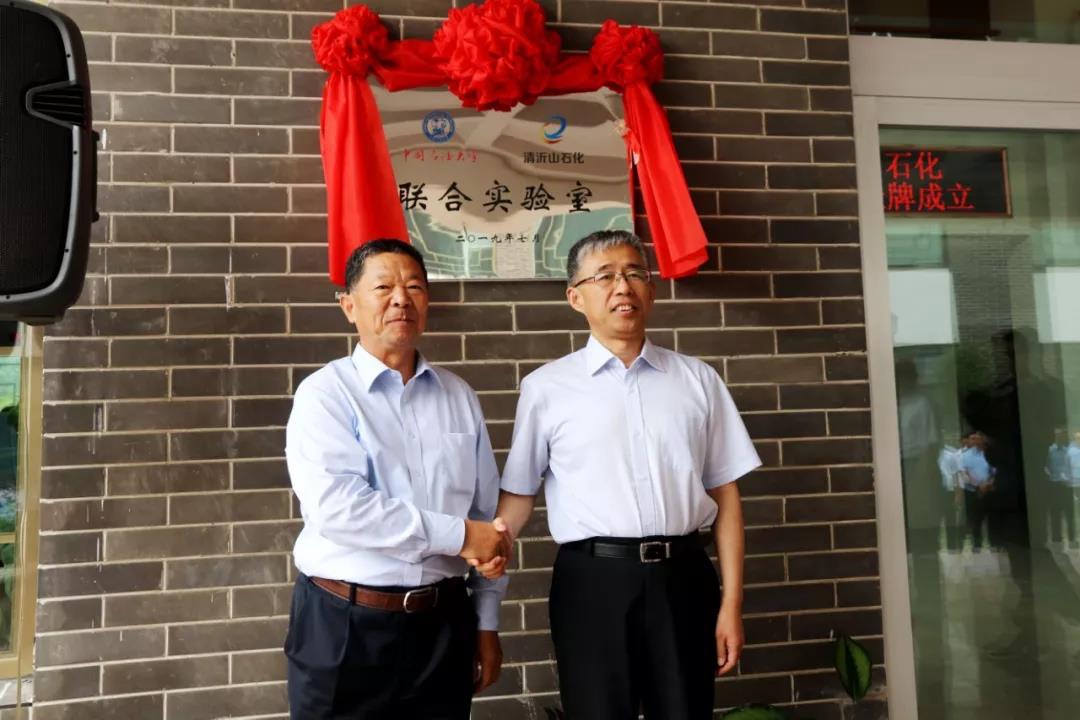 7月11日,太阳成集团tyc33455cc化学工程学院与山东清源集团共建“特种油联合实验室”揭牌仪式在沂水清沂山石化公司举行。山东清源集团董事长马之清、学院院长杨朝合教授共同为联合实验室揭牌。