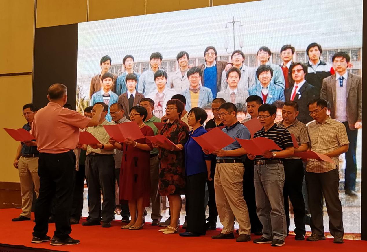 杨国华老师与校友一起合唱“我为祖国献石油”