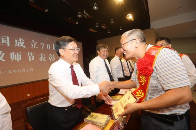 9月10日上午,学校举行庆祝新中国成立70周年暨2019年教师节表彰大会,表彰2017~2019年度为学校建设和发展作出突出贡献的先进集体和先进个人。党委书记王勇等校领导出席大会,并为先进集体和个人颁奖,校长郝芳发表讲话,大会由党委副书记万云波主持。