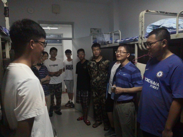 9月13日中秋节,学院院长杨朝合教授一行,走进新生宿舍看望2019级新生。此次活动涉及化学工程与工艺、能源化学工程、应用化学、化工安全工程、环境工程等五个专业,学院领导、教师分成11个小队分别去到13号宿舍楼和15号宿舍楼,与新生面对面交流,唠家常、谈理想,指点迷津,解惑答疑。