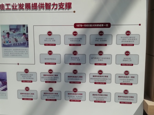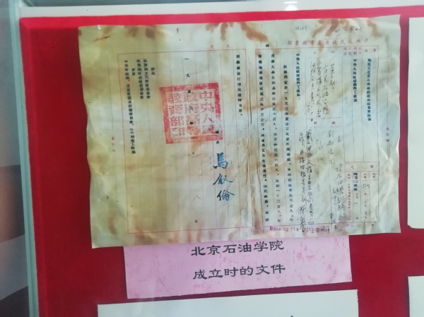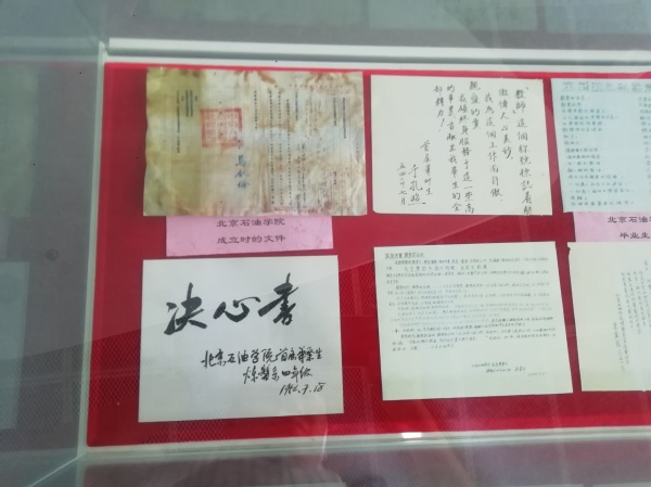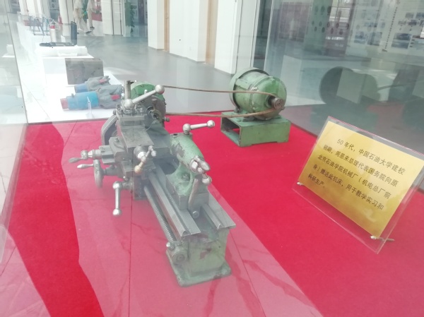 展览用200余张历史照片、50多件文物、10余件代表性科技产品实物进行了详实展示,展现了66年来学校办学与共和国同向同行的家国情怀,呈现了学校在“双一流”建设进程中取得的辉煌成就,彰显了进入新时代的中国石油大学服务国家能源战略的责任担当。在现场,党员们沿着展区,从北京石油学院的大门走起,一路参观了北京石油学院、华东石油学院、石油大学、中国石油大学四个时期的专题展。石油大院主楼、毛主席雕塑、周总理捐赠的小型机床、毕业生卡片……一件件实物、一幅幅历史照片,一尊尊雕塑,大家认真观摩、热烈讨论,深入了解校史校情、学习习近平新时代中国特色社会主义思想,接受思想政治洗礼。在观展现场,幸遇从学院机关支部退休的老党员谭峰老师,他结合自己在校学习、工作期间的亲身经历,给大家讲解了一些展物背后的故事,为大家上了精彩的一课。大家无不为历代石大人励精图治、追求卓越的精神所感动和鼓舞。