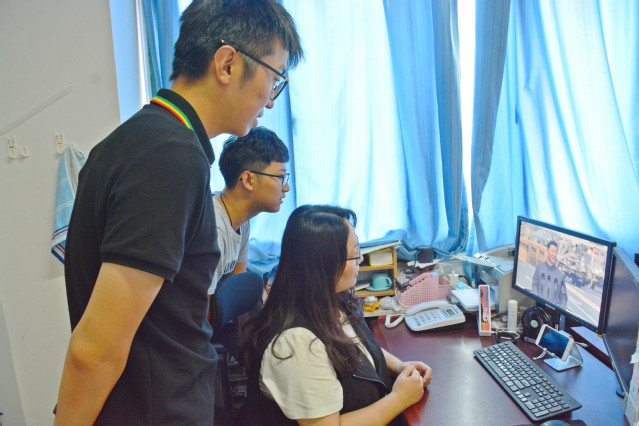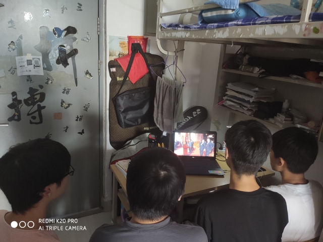 学院党委书记李国与学院师生共同观看直播 魏孟吉摄影