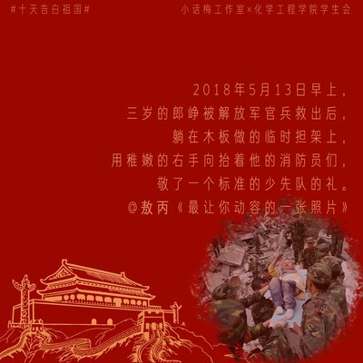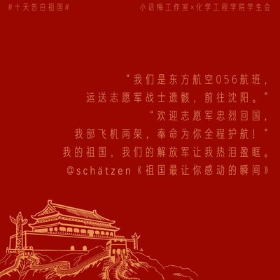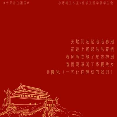 9月20日至9月29日,学院化蕴长江通讯社小话梅工作室发起#十天告白祖国#线上活动,十天十个话题,参与者通过QQ空间、微博等网络平台发表原创短文参与话题讨论,#告白祖国的三行情诗#、#你爱上祖国的理由#、#我与祖国同框#、#最爱的祖国河山#等10个主题吸引了超5000人浏览,学院“缤纷化蕴”微信号进行整合推送,将化院学子的爱国之情通过图片、诗歌、讲述等形式表达。