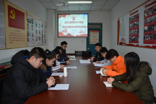 1226日,化学工程学院在A119A219会议室分别召开2019年度学生党支部书记述职评议会,全体学生党支部书记进行述职,辅导员参加会议并点评。