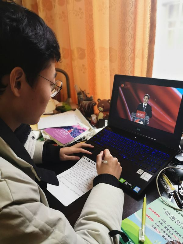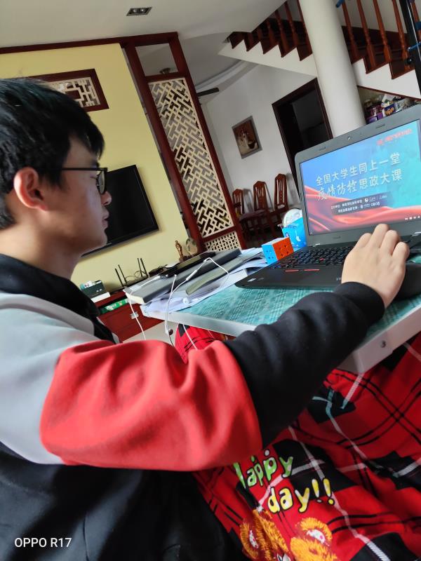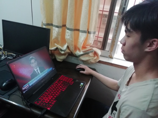2019级学生李炜添在家乡广东收看思政课