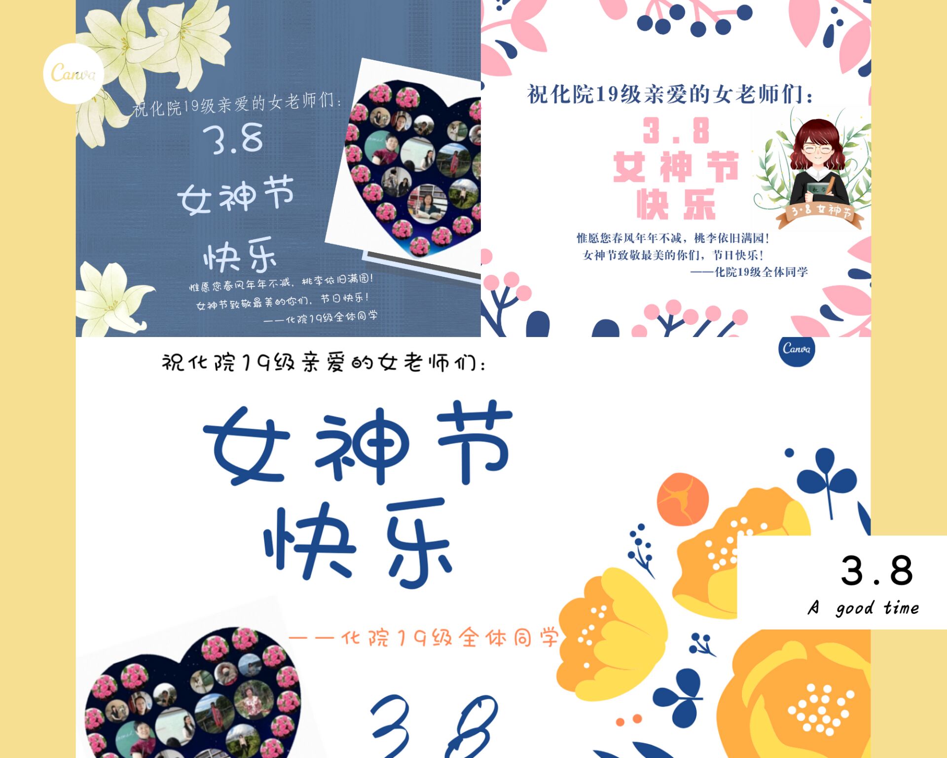 感念师恩,献礼女神节。“饮其流者怀起源,学其成时念吾师”,3月8日妇女节到来之际,2019级全体同学为女老师们送上祝福。化安1902班学生孙艺佳制作了节日电子贺卡,化安1901班学生杨峥剪辑了视频,化工1905班陈一鸣原创诗歌。女神节致敬最美的女老师们,惟愿老师春风年年不减,桃李依旧满园。