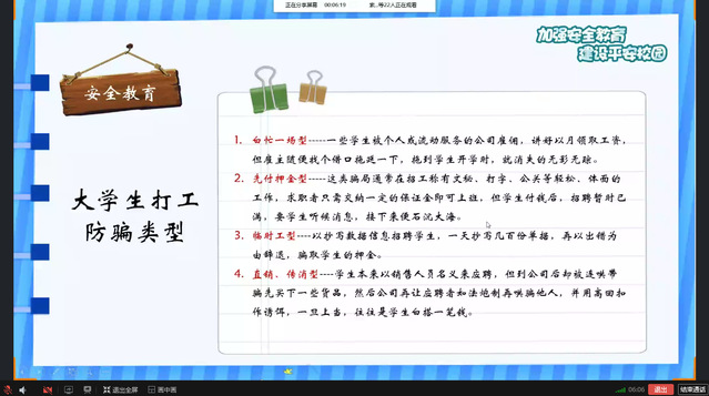 各班通过不同的形式向学生传播有关国家安全的知识,加强宣传教育,提高学生主动维护国家安全的意识。应化1804班向班级学生介绍了几种危害国家安全的行为及相关罪名并辅以实例,借此警示学生们注意自身行为,提高学生们辨别相关危害国家安全行为的能力;化工1806班在活动最后还带领全体学生宣誓:牢固树立国家安全意识,保护国家秘密,不触碰法律底线。正如化工1801班班长闫维文所说:“作为青年大学生,我们要加强国家安全相关法律知识学习,牢固树立国家安全意识,筑牢思想防线,树立维护国家安全、保守国家秘密、人人有责的观念。”