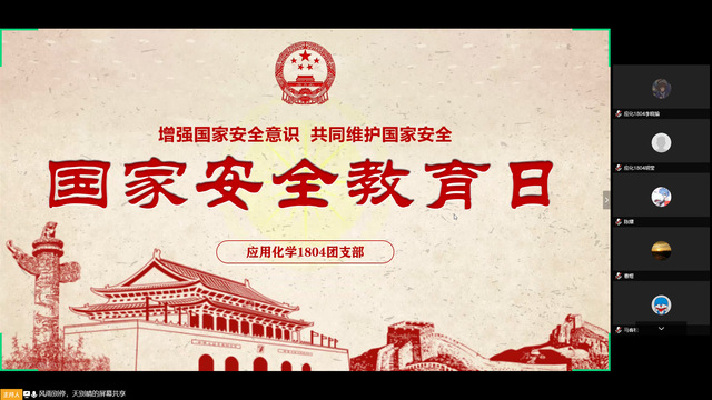 国家安全是安邦定国的重要基石。为进一步牢固树立总体国家安全观,筑牢国家安全人民防线,增强国家安全意识,4月10日—19日,2018级各班级相继开展“国家安全,共同守护”主题线上班会。
